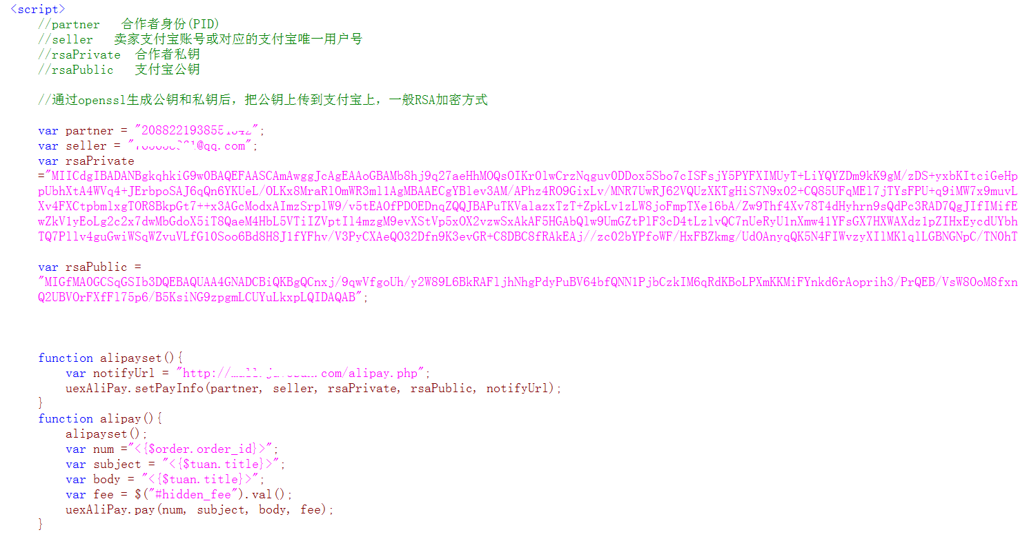 appcan开发的app对接支付宝代码!开发之前请配置好相关的参数